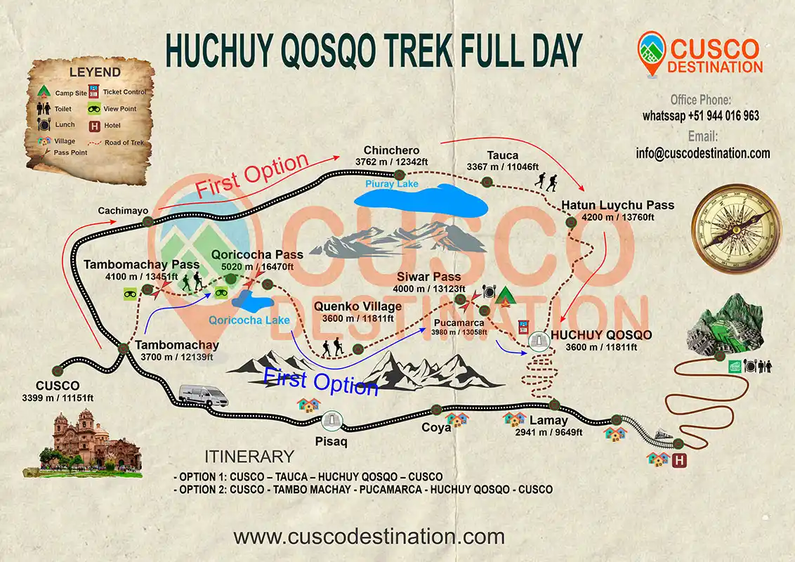 In extreme cases when the “Huchuy Qosqo trek” is declared closed for safety reasons, Cusco Destination Travel Agency E.I.R.L. will replace your trek with an alternative trek.