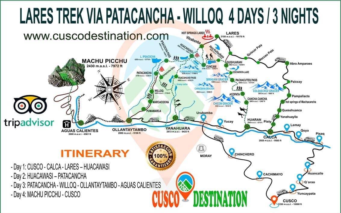 In extreme cases when the “Lares Trek to Machu Picchu” is declared closed for safety reasons, Cusco Destination Travel Agency E.I.R.L. will replace your trek with an alternative trek.